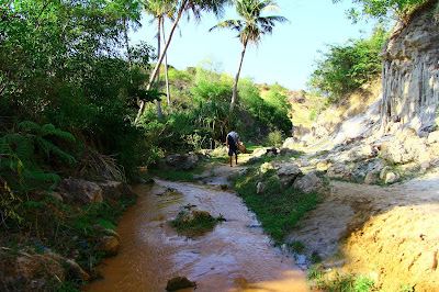 De camino al hotel hicimos una ultima parada en el "río rojo", se trata de un pequeño río (1 palmos de profundidad) que llega al pueblo des de las dunas rojas y arrastra la arena con él.